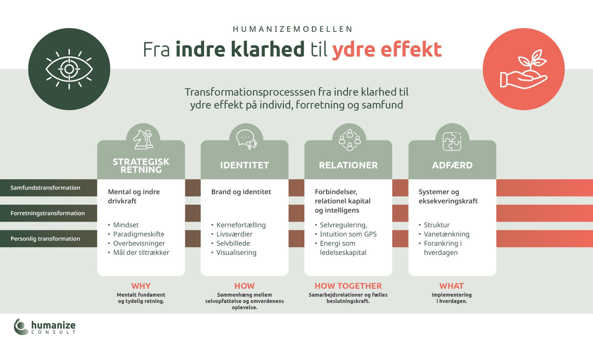 Som rammesættende forståelsesmodel bruger vi Humanize-modellen, som aktivt sættes i spil i dialogen med jer.
